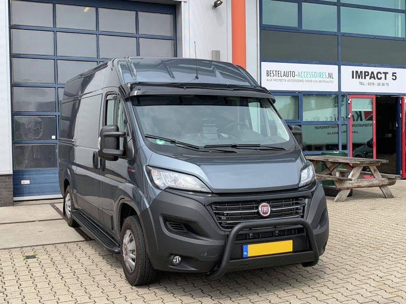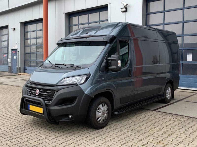 Deze Fiat Ducato hebben wij voorzien van het volgende, Aluminium zwarte treeplanken Zonneklep Zwarte Pushbar