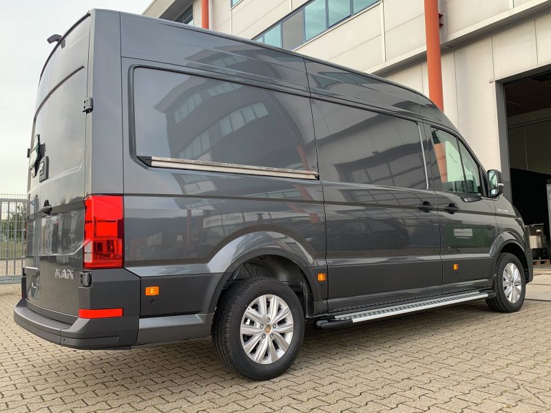 Deze nieuwe MAN TGE hebben wij voorzien van Aluminium Treeplanken.