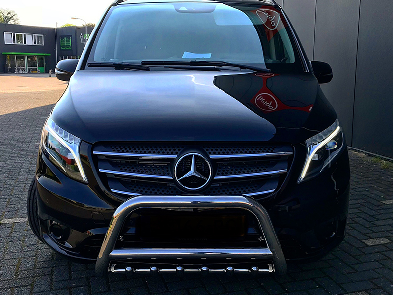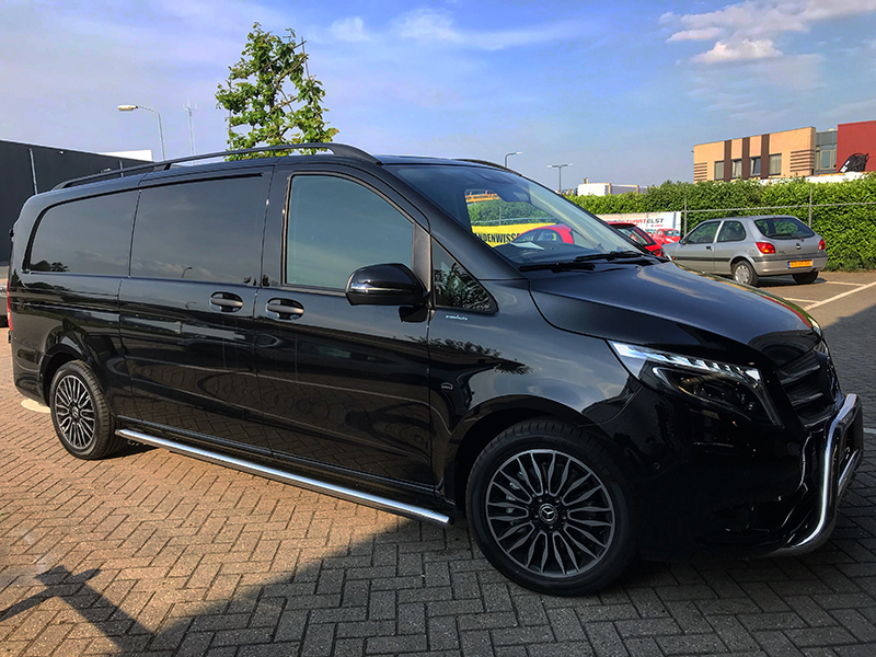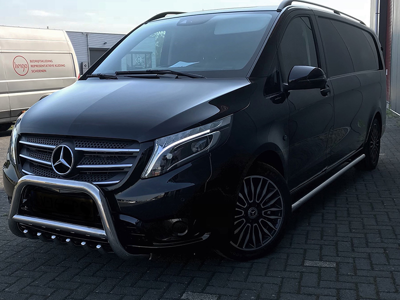 Deze prachtige Mercedes Vito mochten wij ook voorzien van rvs sidebars en een bullbar.