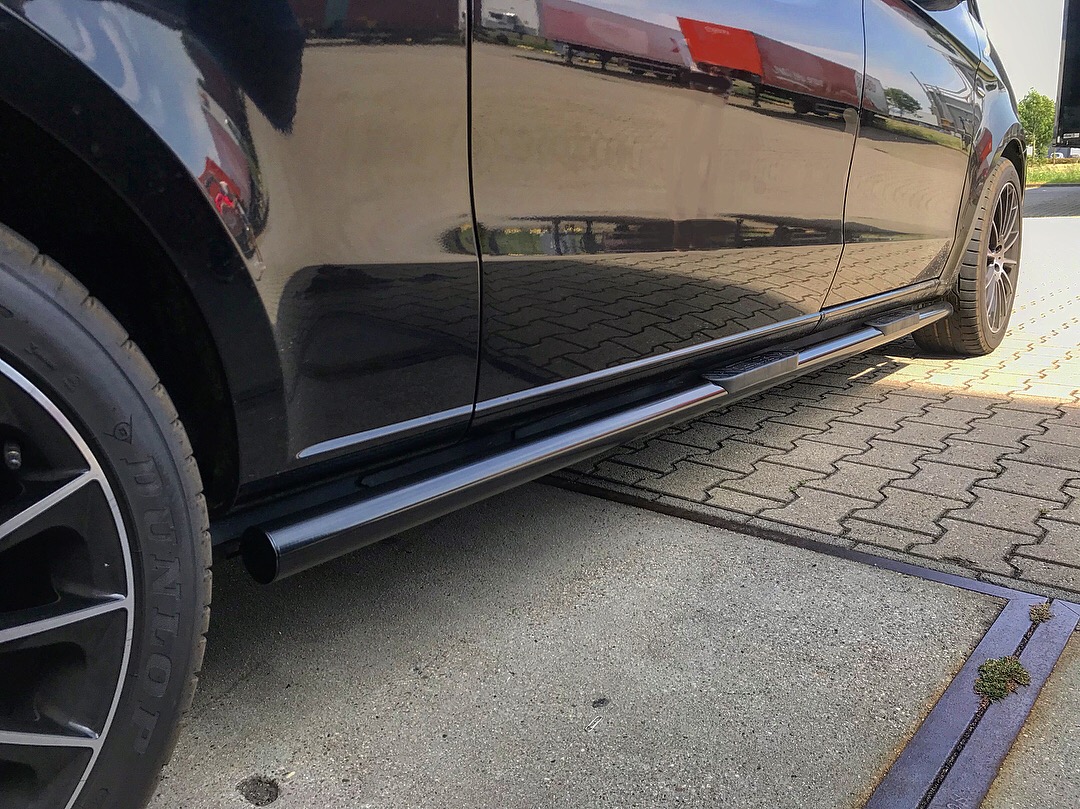Deze prachtige Mercedes V-klasse hebben wij voorzien van zwarte sidebars icm steps.