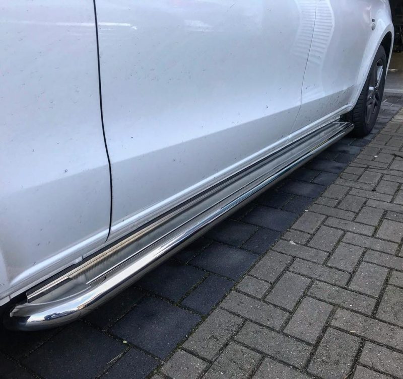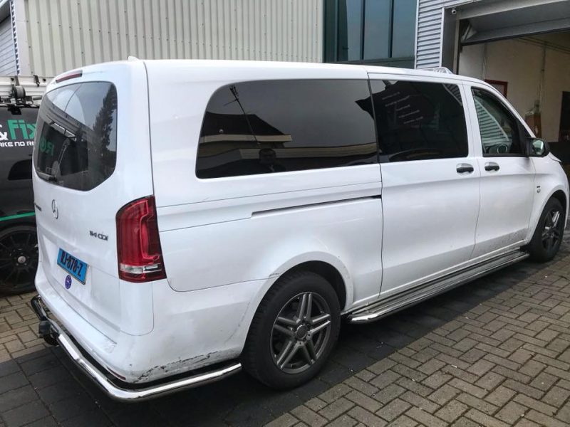Deze mooie Mercedes Vito van Taxi Harbrinkhoek hebben wij voorzien van RVS Sidesteps en een doorlopende RVS Rearbar.