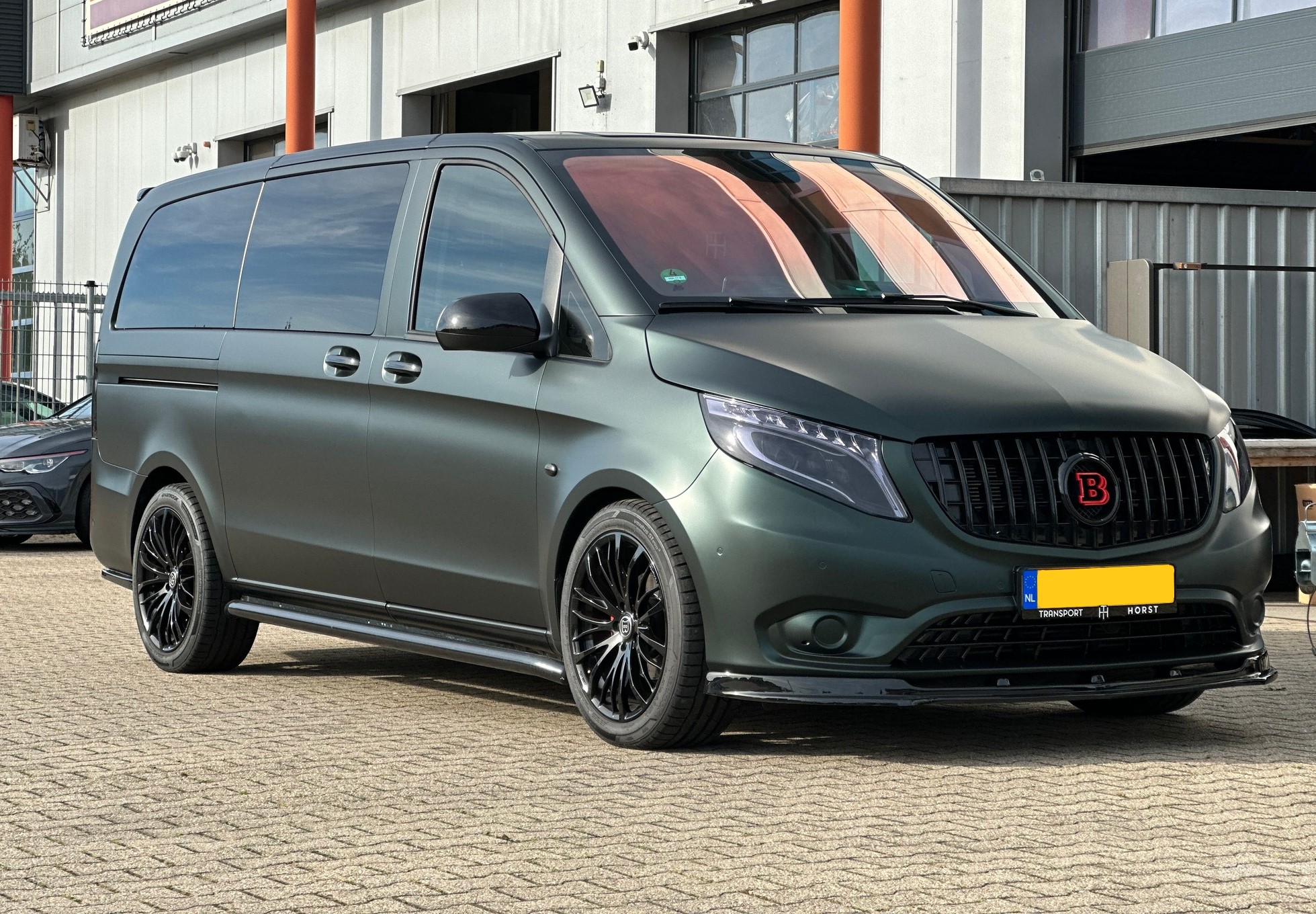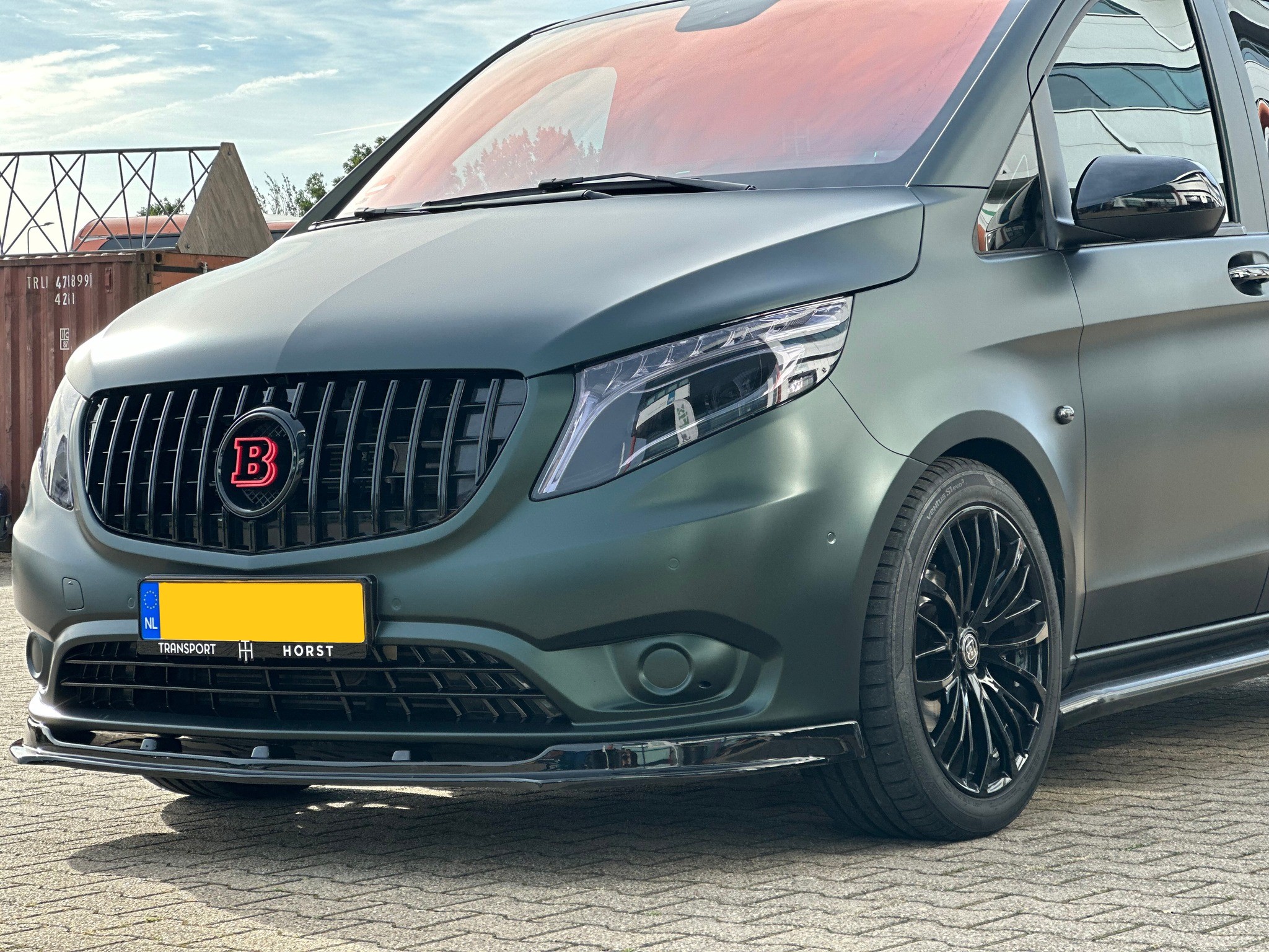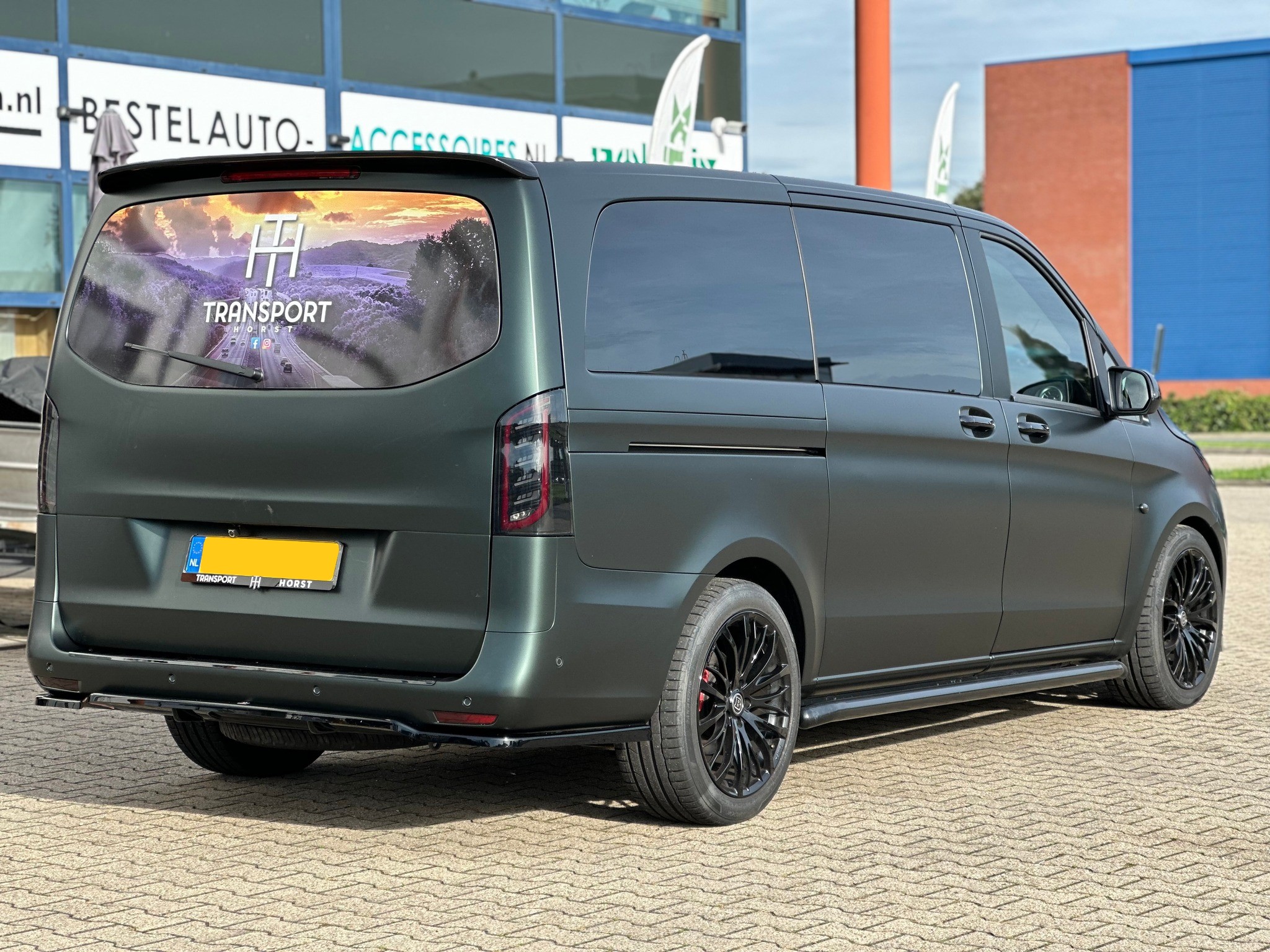 Deze mooie Mercedes Vito hebben wij uitgevoerd met onze zwarte accessoires! Sidebars Onderspoiler Achter diffuser Achterklep spoiler Led Xenon koplampen Middenconsole Grill