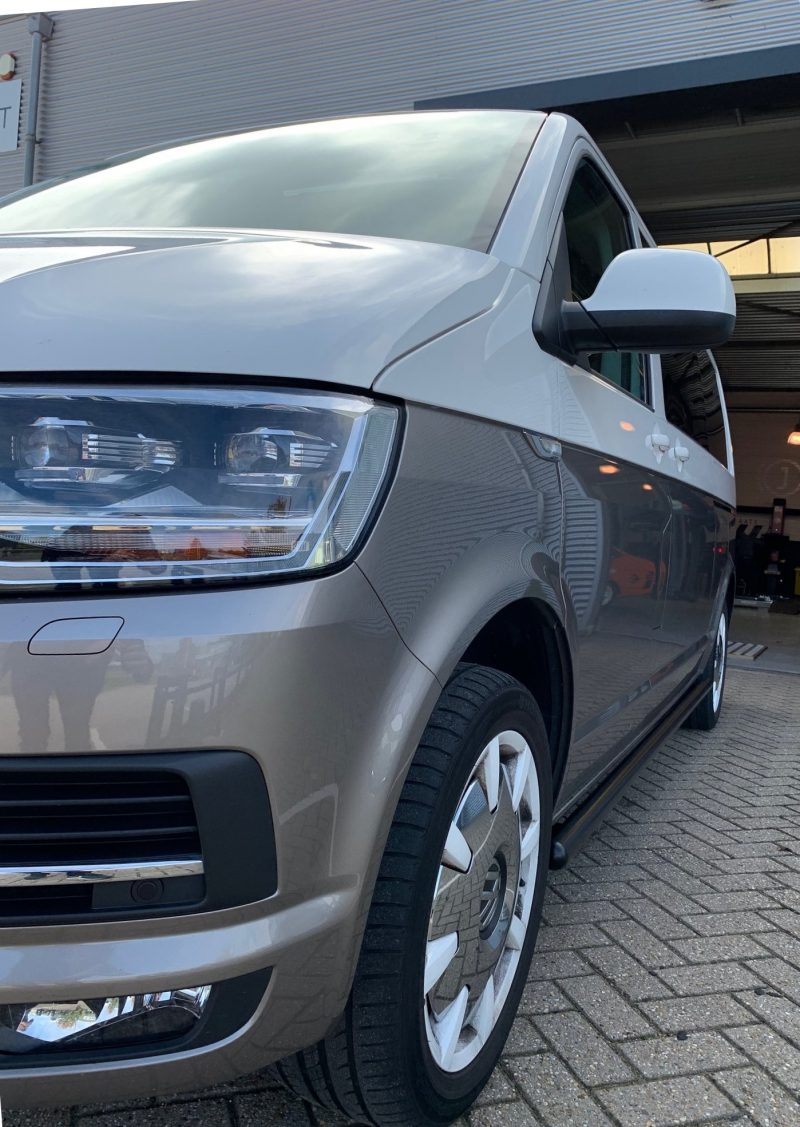 Prachtige Volkswagen Transporter T6 Two-Tone uitgevoerd met onze zwarte sidebars!