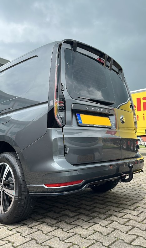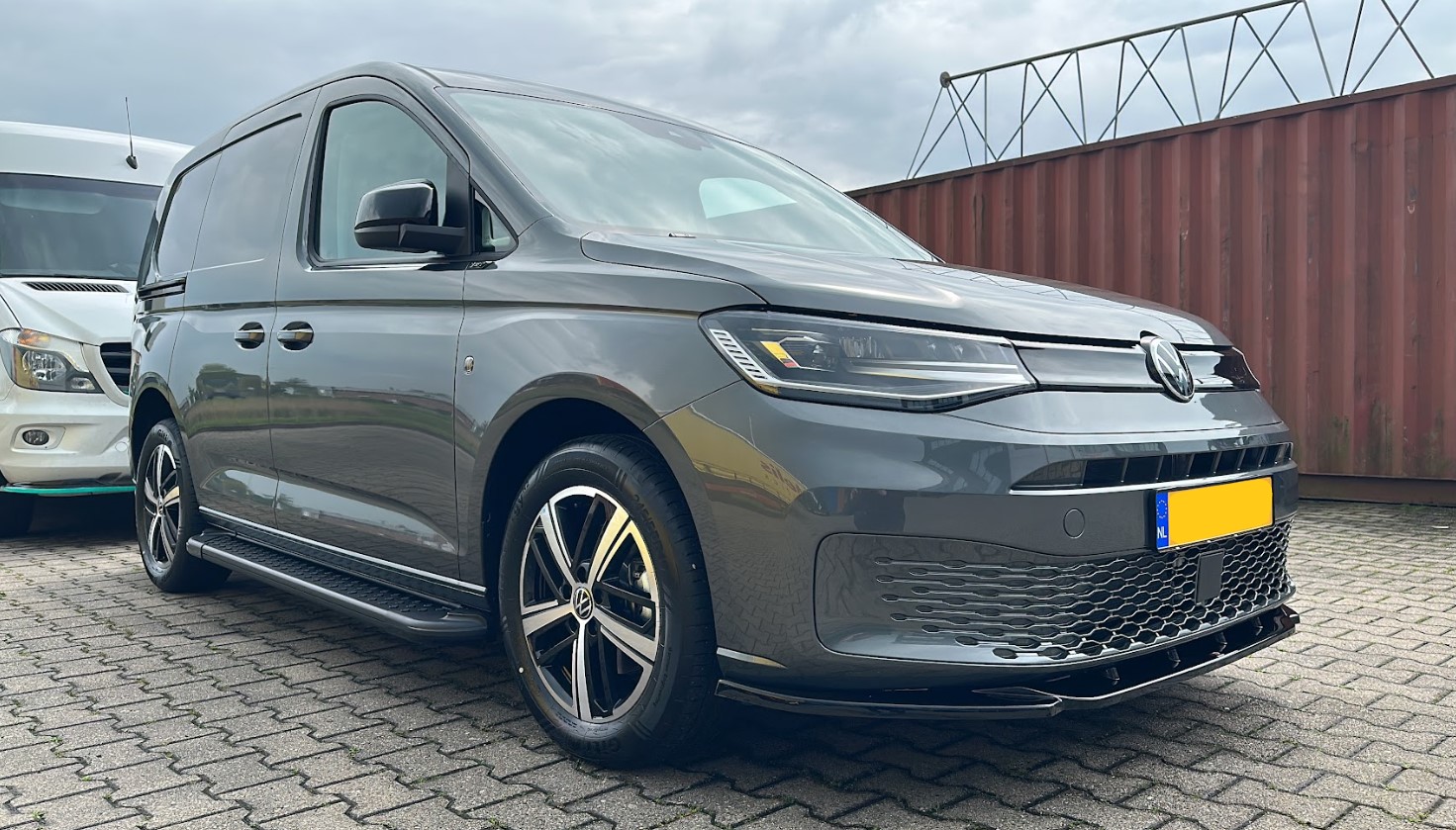 Volkswagen Caddy Cargo 1st Edition Zwarte Aluminium treeplanken Zwart Dakspoiler Zwarte onderspoiler Zwarte rear diffuser