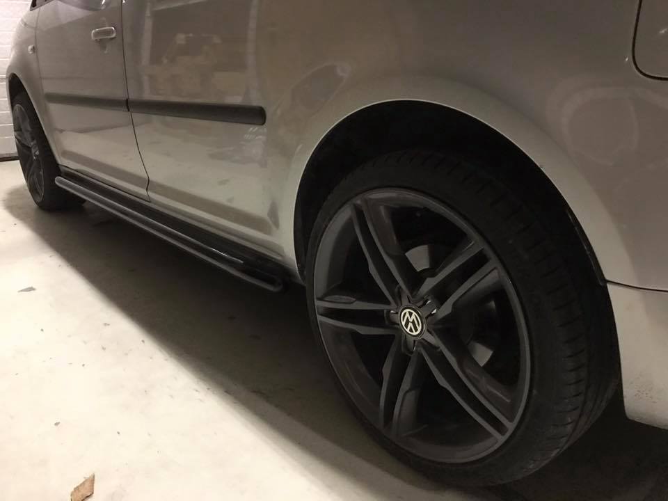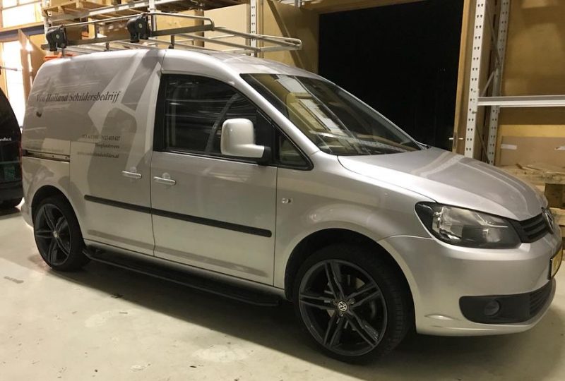 VW Caddy voorzien van zwarte RVS sidebars