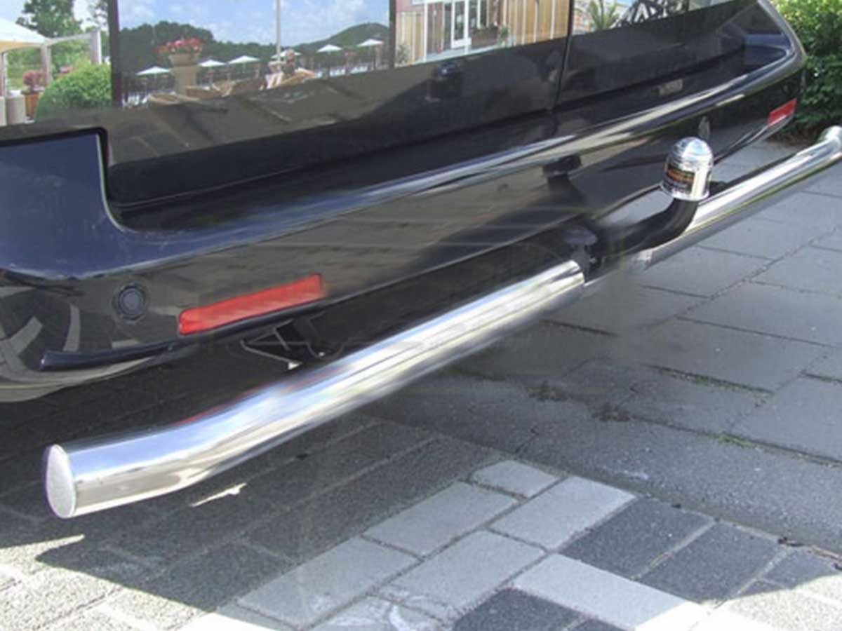 Voorkom schade aan uw achterbumper, monteer een achterbar/rearbar op uw bestelauto! Een achterbar biedt u meer bescherming aan de achterkant van uw bestelauto, bijvoorbeeld tijdens het laden en lossen van pallets. Combineer een achterbar met een set sidebars en de volledige carrosserie van uw bestelauto wordt beschermd tegen botsingen met stoepranden en andere objecten. Een achterbar is onmisbaar indien u vaak pallets laadt of lost via de achterzijde van uw bestelauto. Een achterbar voorkomt dat uw achterbumper wordt beschadigd door bijvoorbeeld een heftruck. Deze zal allereerst tegen de achterbar botsen en bespaart u iedere keer weer een kostbare deuk in uw achterbumper. Eveneens biedt een achterbar u veel meer bescherming bij het achteruitrijden, bijvoorbeeld door een botsing met een paaltje. Een kleine inschattingsfout kan namelijk enorm veel schade veroorzaken aan uw bestelauto. Een achterbar heeft naast zijn beschermende functie ook het voordeel dat het indien nodig is als een opstap gebruikt kan worden. Onze achterbars zijn eenvoudig en gemakkelijk te monteren. Bij iedere achterbar leveren wij een montagehandleiding én alle benodigde montagematerialen.