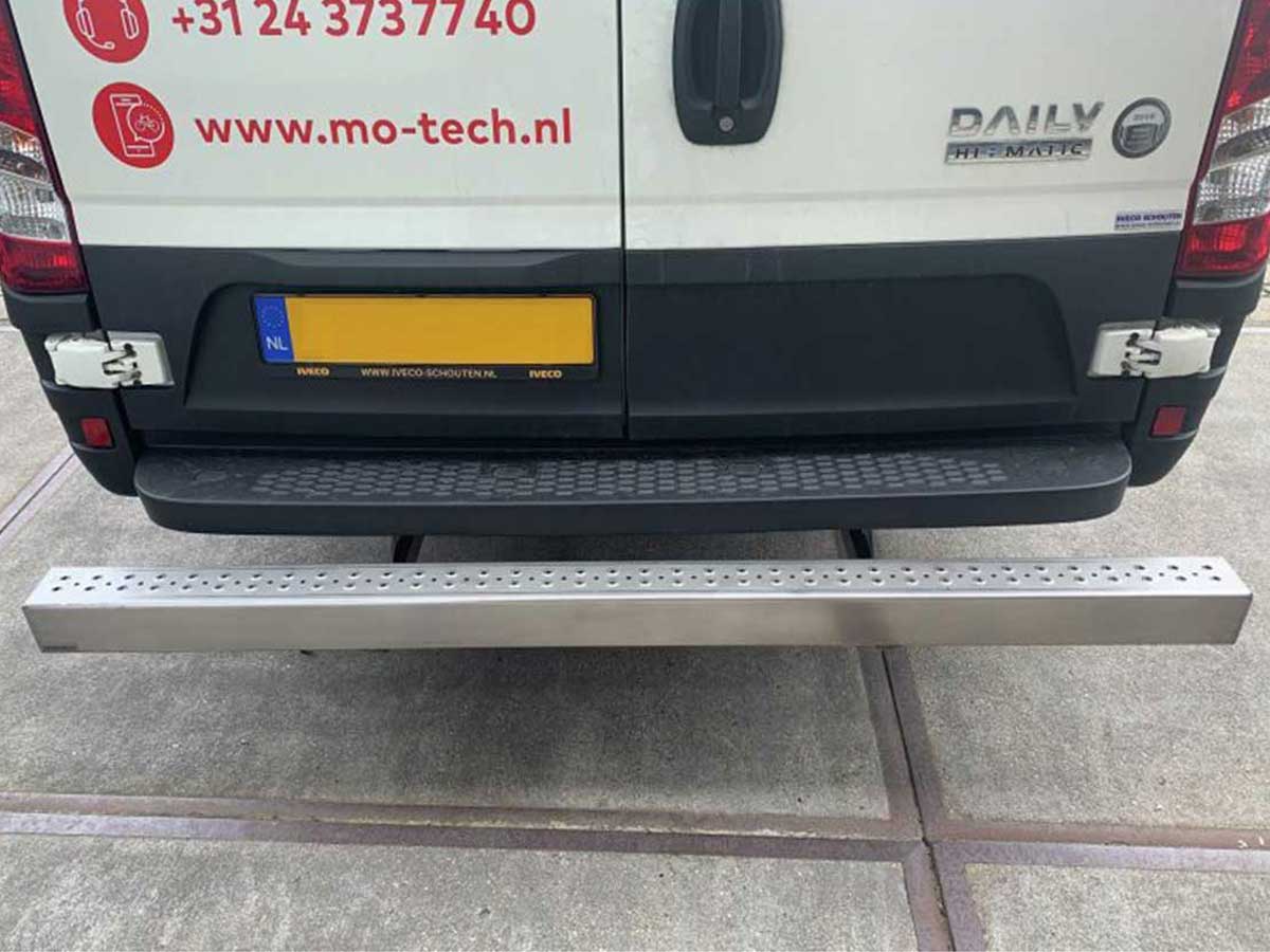 Indien u de achterbar voornamelijk wilt gaan gebruiken als een opstaptrede voor uw bestelauto dan raden wij u echter aan om in dat geval voor één van onze achteropstappen te kiezen. Onze achteropstappen zijn namelijk speciaal ontwikkeld om als opstap te functioneren, deze bieden veel meer comfort en hebben ook nog eens een antislipprofiel, welke voorkomt dat u uitglijdt bij nattigheid zoals regen, sneeuw of wanneer uw schoenzolen vochtig zijn door uw werkzaamheden. Tevens bieden onze opstappen een goede bescherming tegen schades aan uw achterbumper net als onze achterbars.