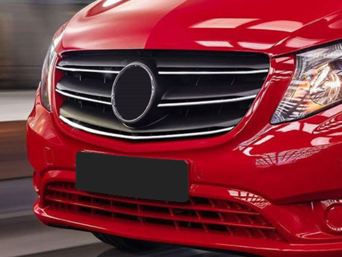 Grill Mercedes Vito W447. Style uw bestelauto geheel naar eigen wens met een (onder)grille en andere styling accessoires speciaal voor uw merk en model bestelauto vervaardigd. Uw bestelauto heeft er nog nooit zo mooi en strak uit gezien als met deze stijlvolle grille. Een stijlvolle grille geeft uw bestelauto een zeer stoere look. Een (onder)grille is echt een sieraad voor uw bestelauto! Door het monteren van een grille (chromen sierstrips) krijgt uw bestelauto meer flair en ook veel meer klasse. Uw bestelauto verfraaien met een grille is dan ook een heel eenvoudige én tevens betaalbare manier om uw bestelauto te onderscheiden van de rest. Een grille geeft uw bestelauto een oogstrelende uitstraling. Een grille heeft een hoog decoratief gehalte en geeft uw bestelauto dan ook een veel luxere uitstraling. De grille is op maat gemaakt voor ieder merk en model bestelauto, zodat deze naadloos de belijning volgen. Een grille is een onmisbare accessoire bij het stylen van uw bestelauto, ze maken de styling van uw bestelauto geheel compleet. Accessoires voor bestelauto’s geven uw bedrijfsvoertuig en daarmee ook uw bedrijf een professionele en zakelijke uitstraling!