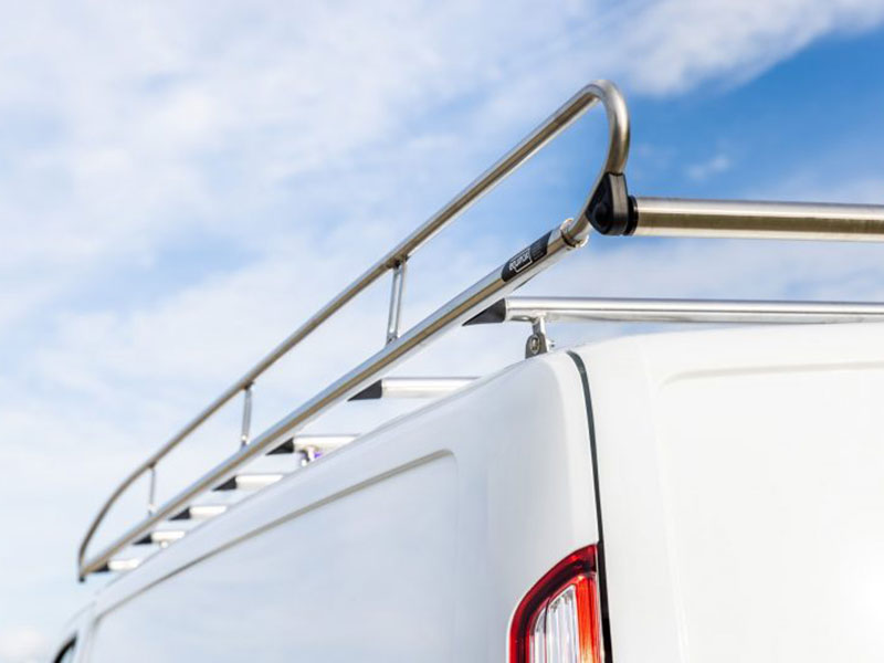 Onze RVS imperiaal voor de Opel Vivaro wordt altijd standaard geleverd met een ladderrol, zo kan je makkelijk de ladder of andere materialen op de imperiaal rollen. De reling van de imperiaal loopt door voorbij de rol waardoor er maximale steun is tijdens het laden.