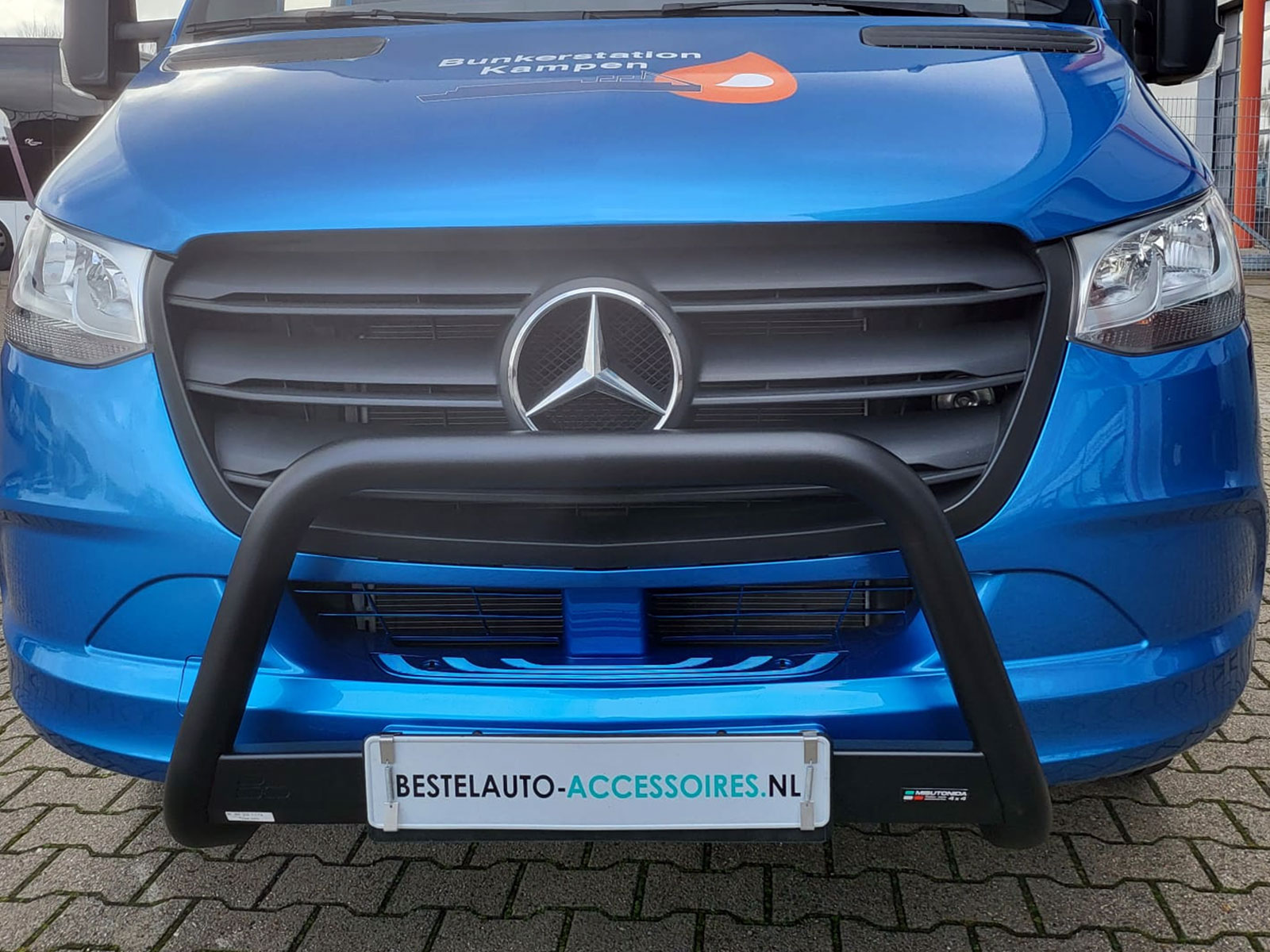 Pushbar Mercedes Sprinter. Onze robuuste RVS pushbars geven het vooraanzicht van uw bestelauto een stoere ‘stierlijke’ uitstraling. Pushbars worden gemonteerd aan de voorkant van uw bestelauto en geven uw wagen een krachtige uitstraling. Onze Pushbars worden gemonteerd aan de originele aansluitpunten op het onderstel van uw bestelauto/bestelbus. Buiten de stoere krachtige uitstraling beschermt een pushbar voor de Mercedes Sprinter natuurlijk ook de voorzijde van uw bestelauto. Sinds 2009 is het rijden met pushbars aan strenge Europese regelgeving gebonden. Een bestelauto met pushbar mag (terecht) niet meer schade aanbrengen dan een bestelauto zonder pushbar. Daarom leveren wij alleen nog pushbars (ook wel bullbars genoemd) met een EU/EC certificaat.